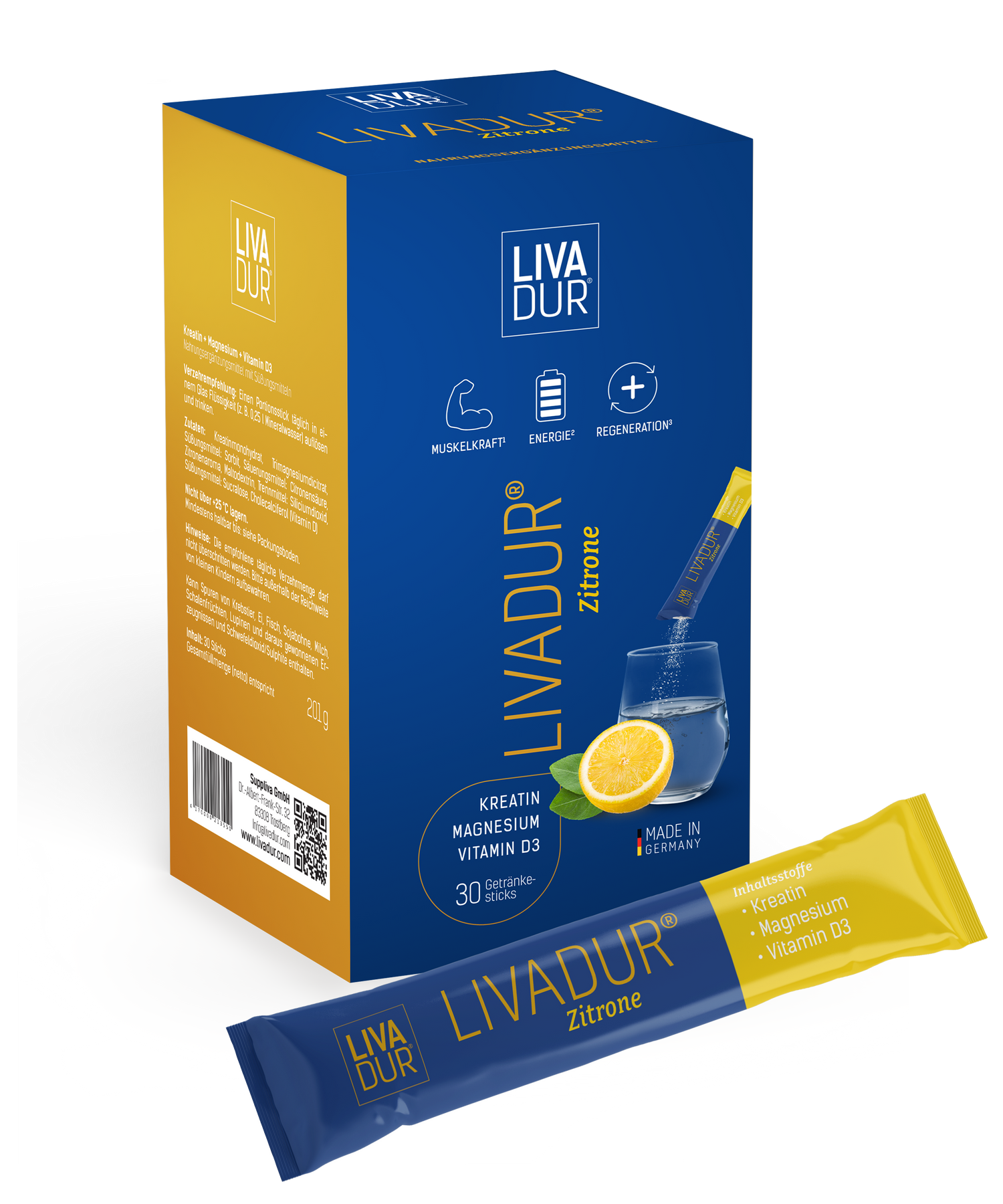 LIVADUR® ist die tägliche 3-fach-Power für deine Gesundheit. Mit Kreatin, Magnesium und Vitamin D3 die perfekten Mikronährstoffe für jeden Ernährungstyp. Dank der hohen Bioverfügbarkeit kann dein Körper die Nährstoffe effizient aufnehmen - für maximale Energie.